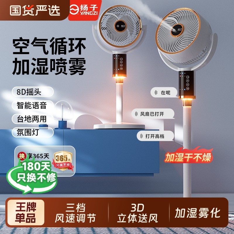 扬子空气循环扇风扇电风扇家用落地扇轻音空调扇加湿喷雾氛围灯