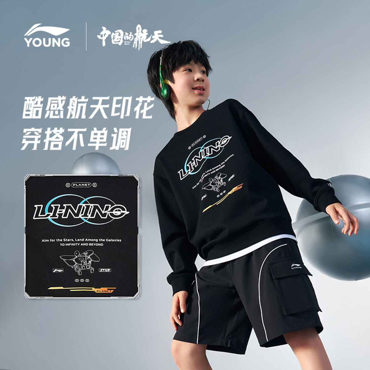 李宁|中国的航天联名系列儿童卫衣2026新款春夏款男童装大童春装