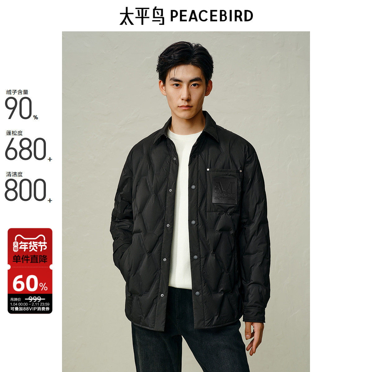 【衬衫式】太平鸟男装 轻薄羽绒服冬季黑色翻领保暖外套防寒夹克