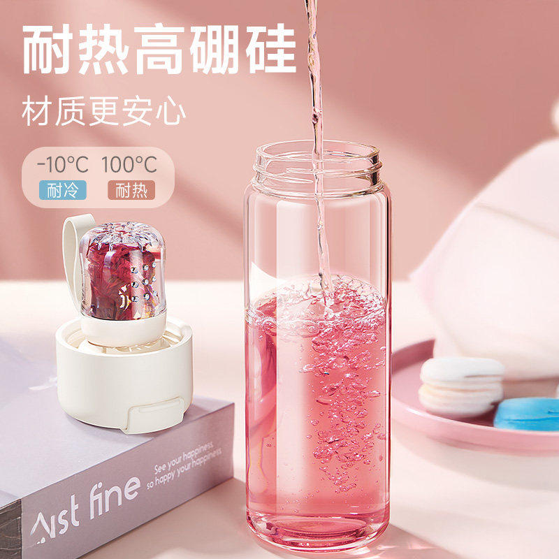 玻璃杯大容量1000ml高硼硅泡茶杯女办公室家用喝水杯子吸管杯新款