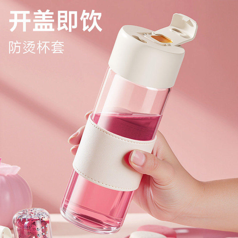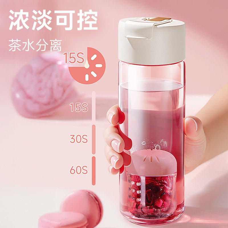 宝选一键开盖水杯车载双层玻璃杯男士泡茶保温速开茶水分离杯茶杯