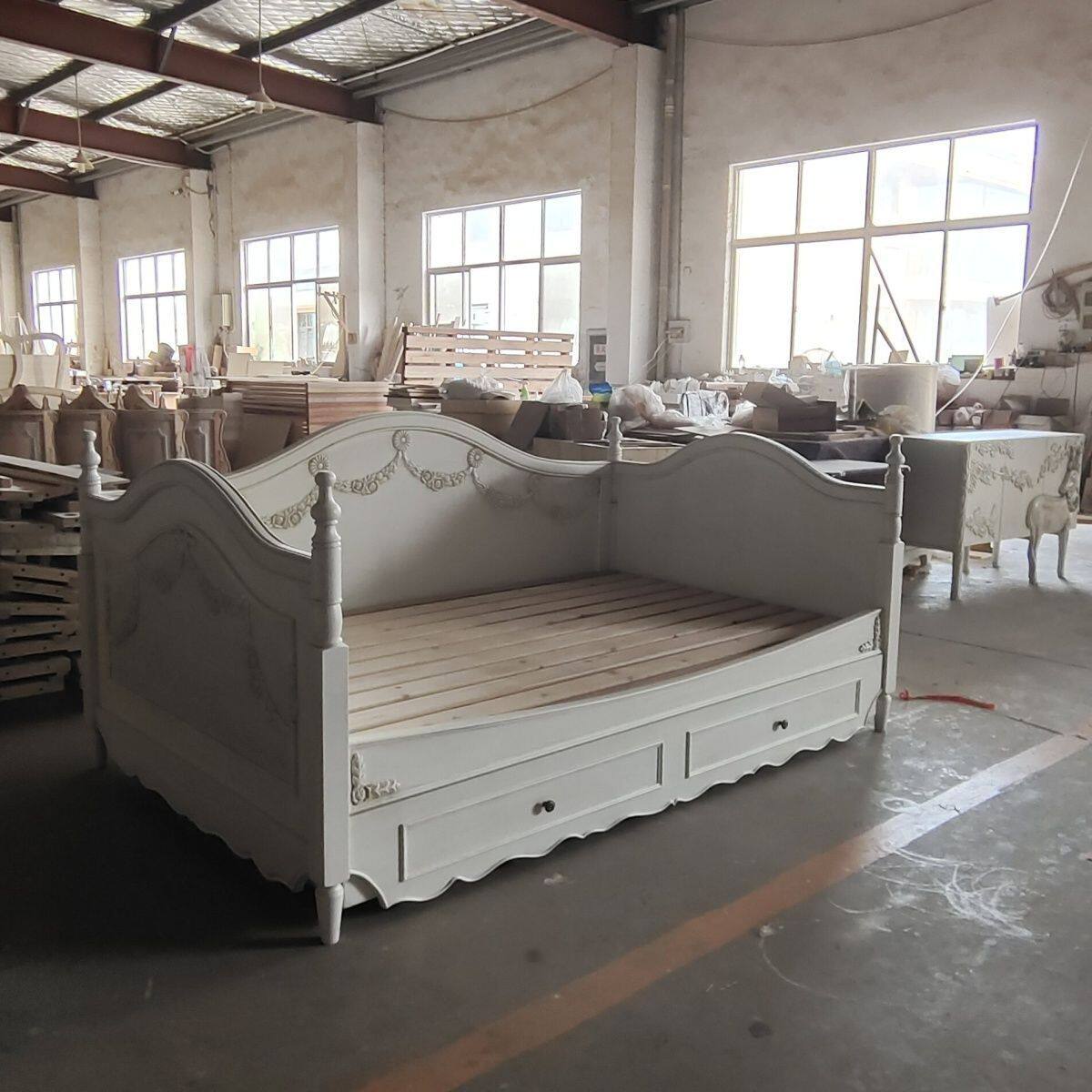 c美式雕花奢华实木床法式公主床藤艺储物沙发床