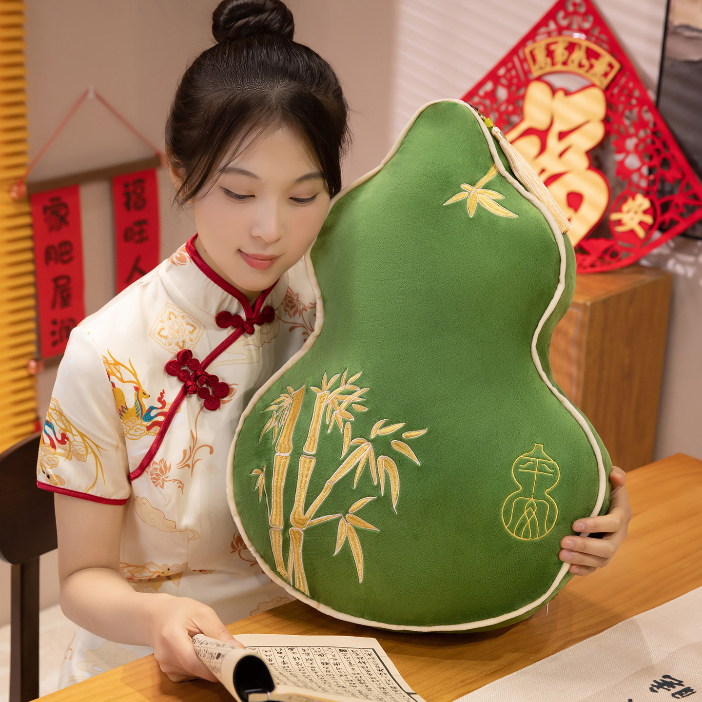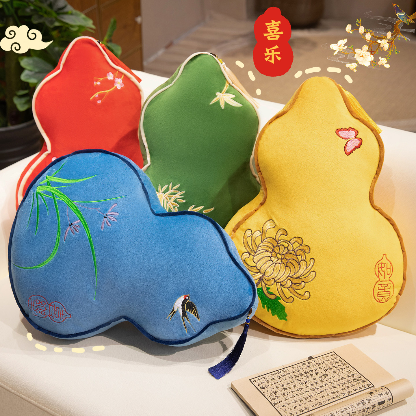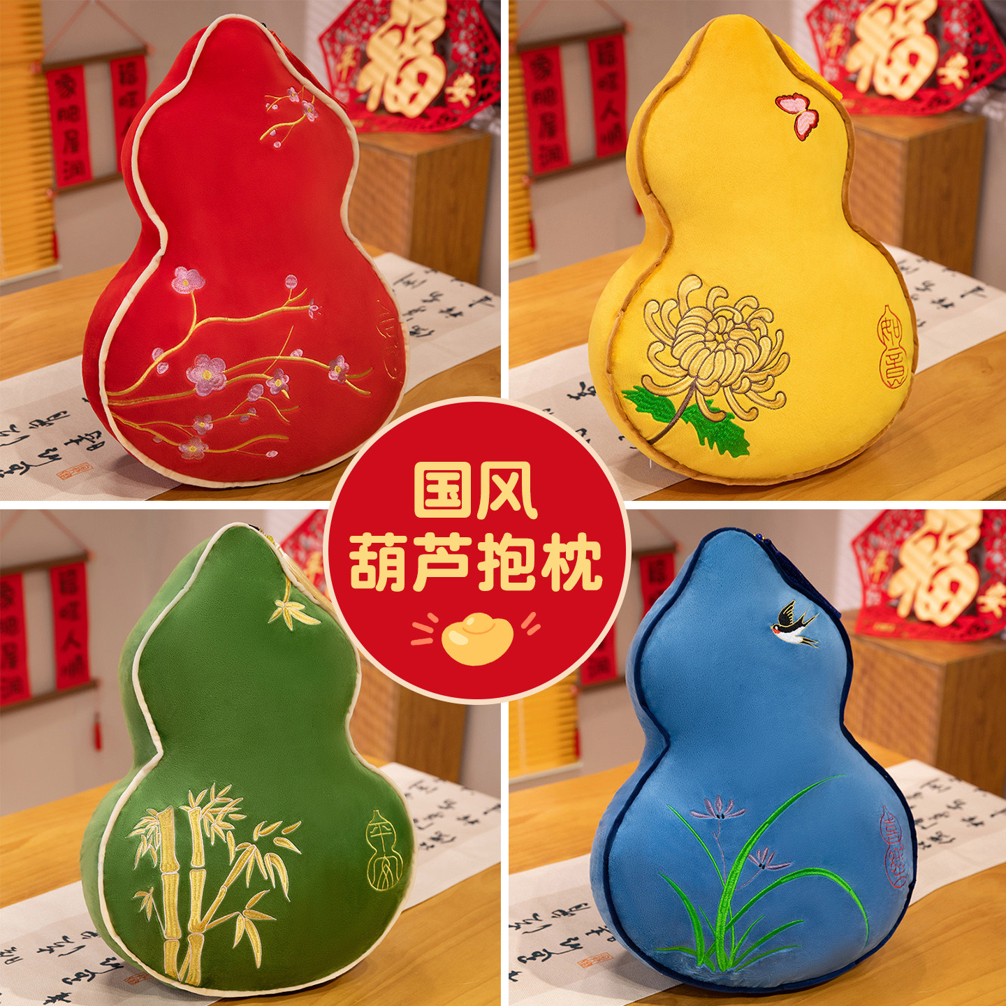 新中式葫芦靠枕古风装饰轻奢福禄抱枕客厅沙发国风刺绣床头枕春节