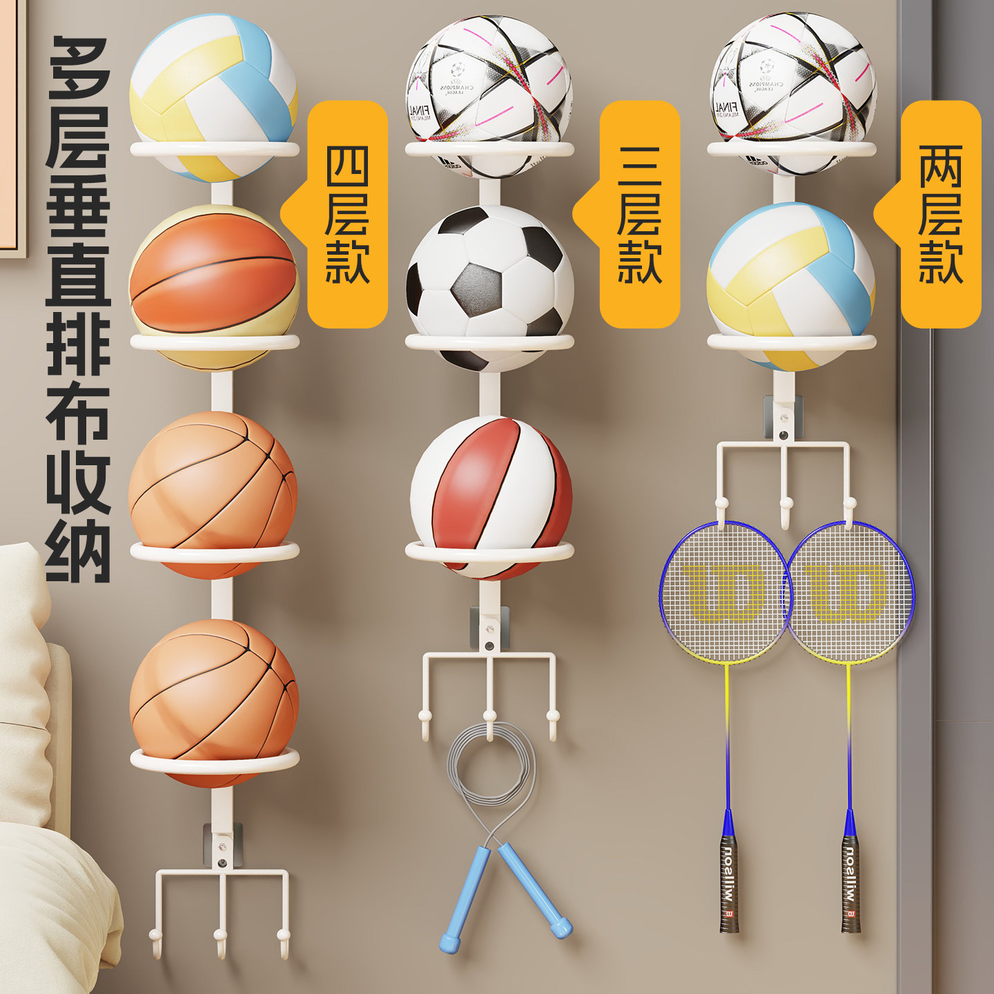 篮球收纳架家用壁挂式球类放置架免打孔排球足球整理架室内多层