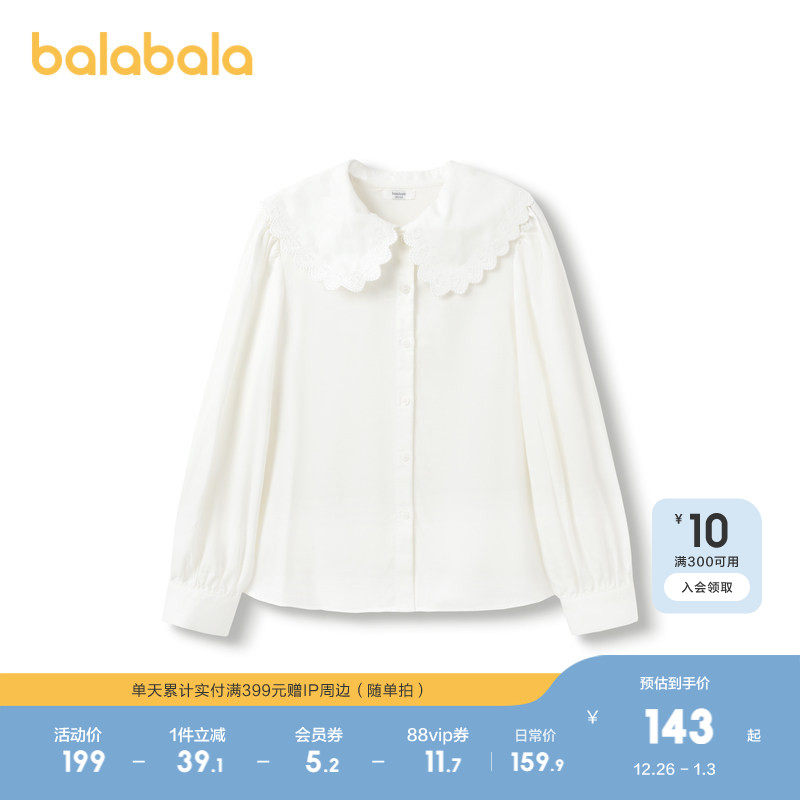 巴拉巴拉童装儿童衬衫女童秋装2025新款白衬衣长袖上衣甜大童百搭