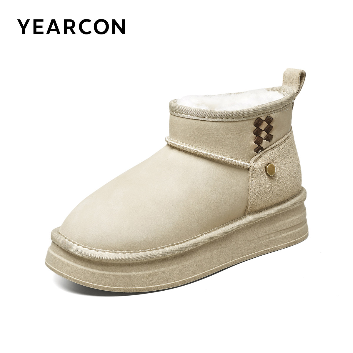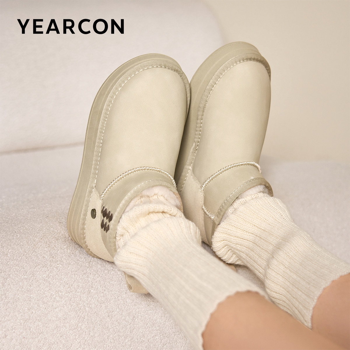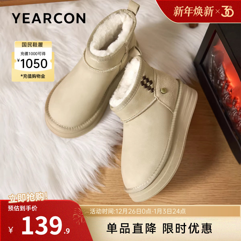意尔康女鞋2025冬季新款加绒保暖棉鞋厚底短筒雪地靴户外休闲短靴