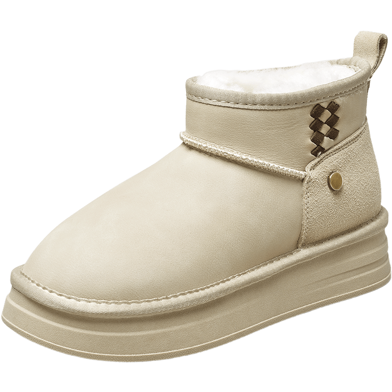 miu家厚底雪地靴女冬季真皮短靴羊毛侧拉链增高厚底加绒毛毛棉鞋