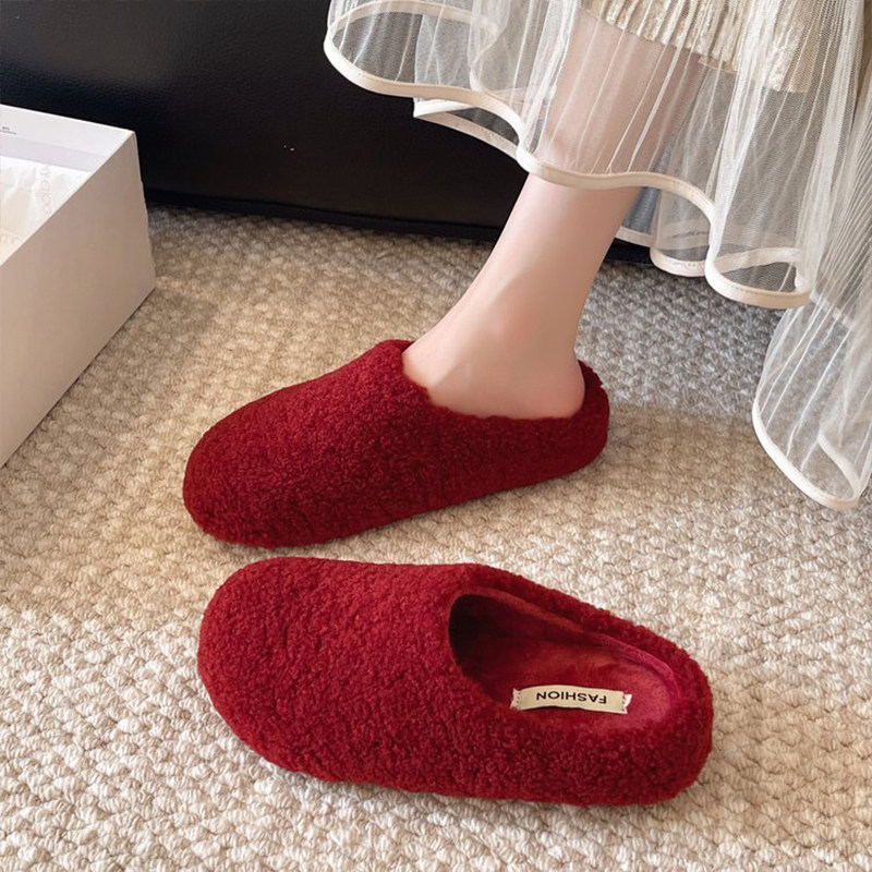 复古红卷毛勃肯鞋秋冬保暖加厚棉拖懒人拖鞋居家包头鞋防滑防水