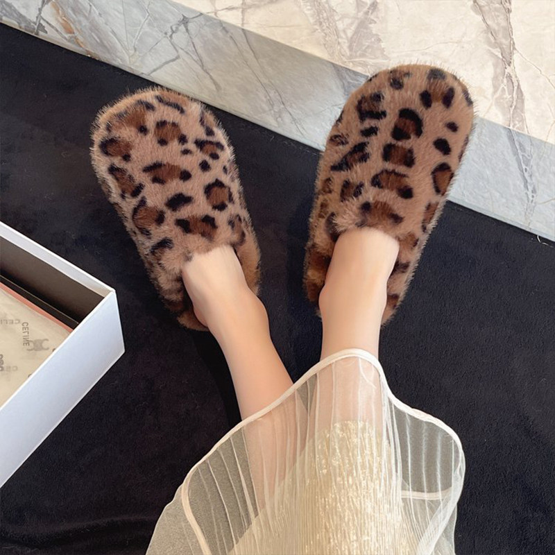 洛瑞娅桑坡毛毛鞋包头拖鞋女外穿羊皮毛一体真皮雪地靴平底懒人鞋