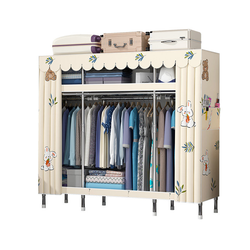 简易布衣柜收纳柜家用卧室收纳整理出租房用加厚加粗钢架组装衣橱