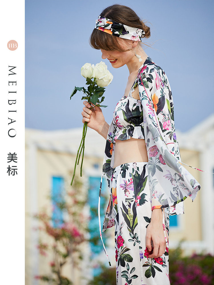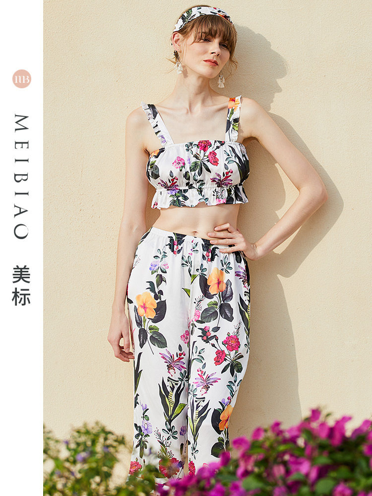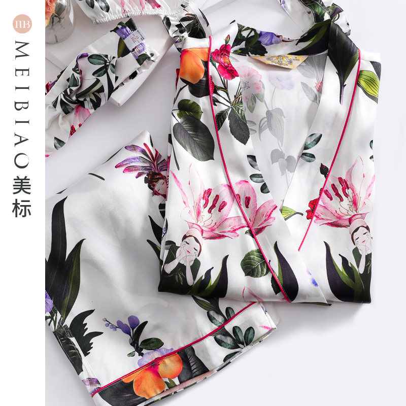 美标重磅真丝睡衣度假四件套装女春夏丝绸100%桑蚕丝可外出家居服
