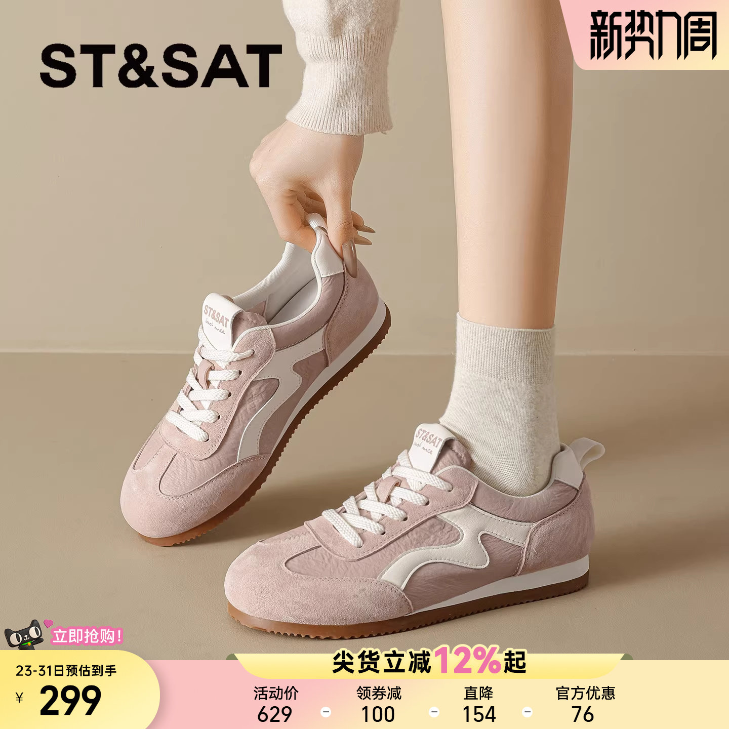 星期六粉色德训鞋女款2026新款春季百搭休闲鞋子复古阿甘鞋运动鞋