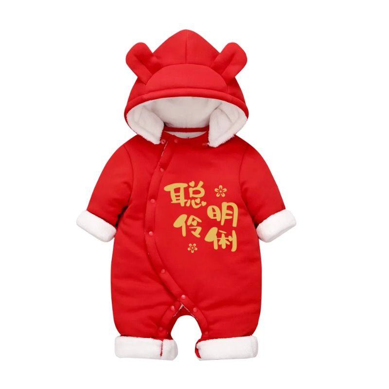 婴儿衣服棉服冬季新生儿虎宝宝满月加厚保暖连体衣过年拜年服套装