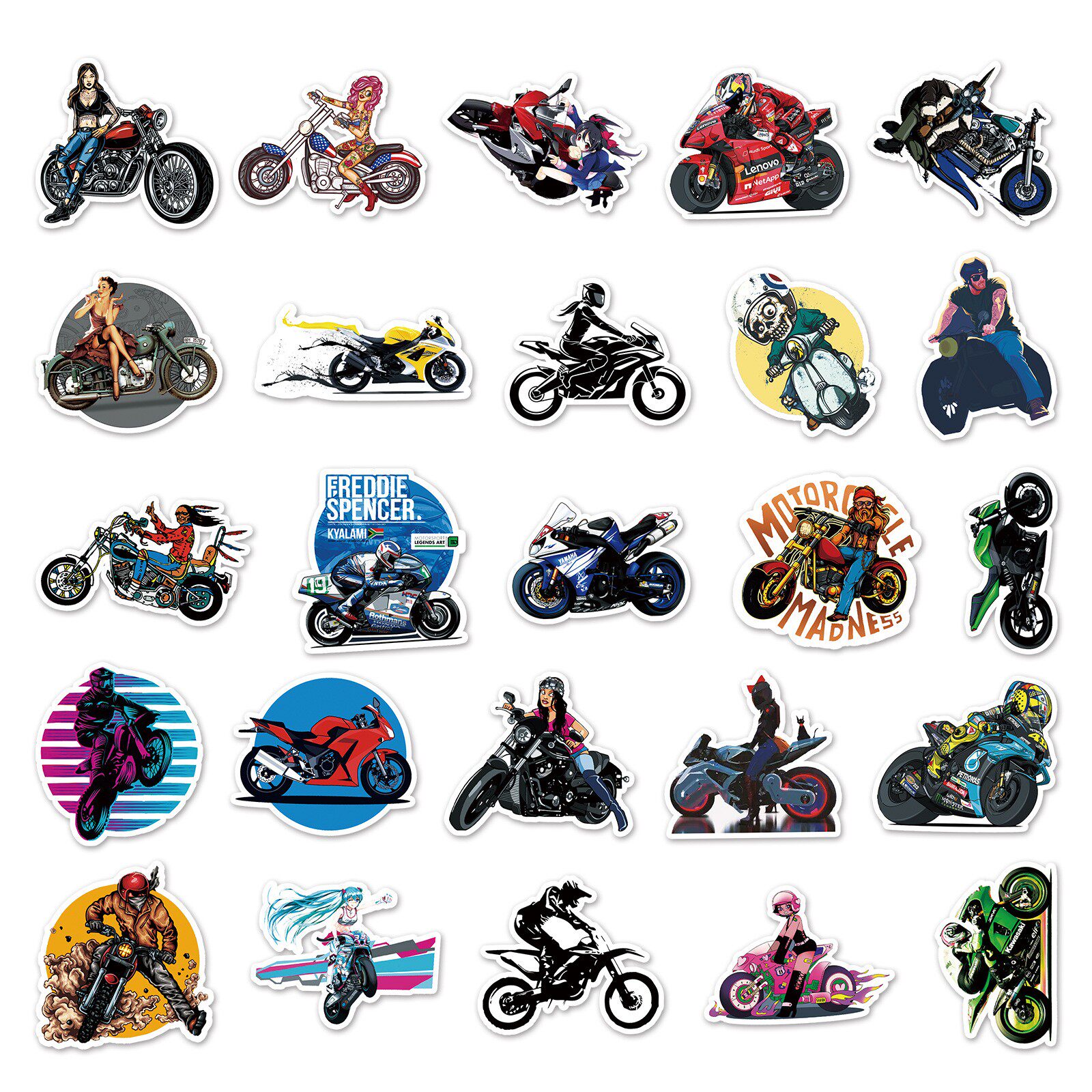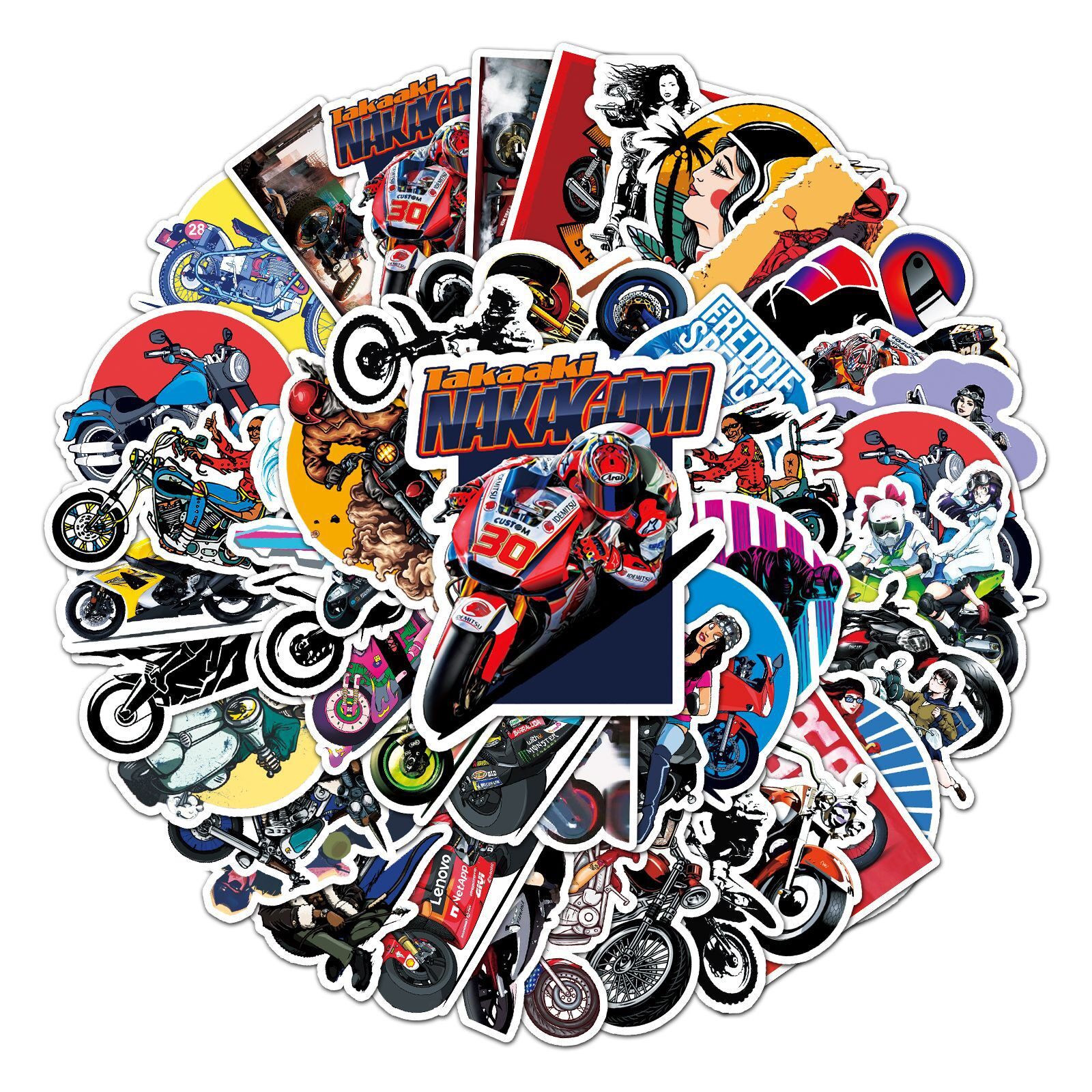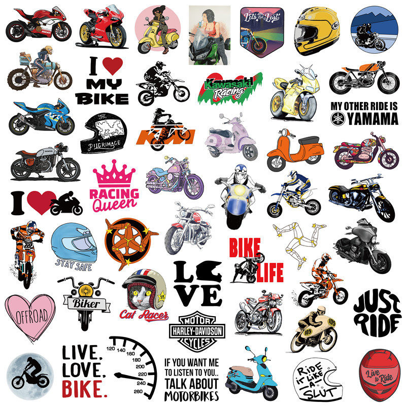 100张个性复古摩托车motorcycle涂鸦贴纸机车拉杆箱滑板冰箱笔记本电脑吉他电动车头盔水杯手账装饰贴画防水