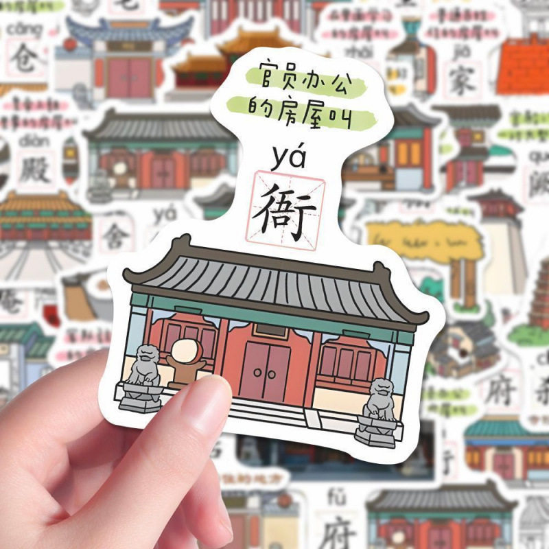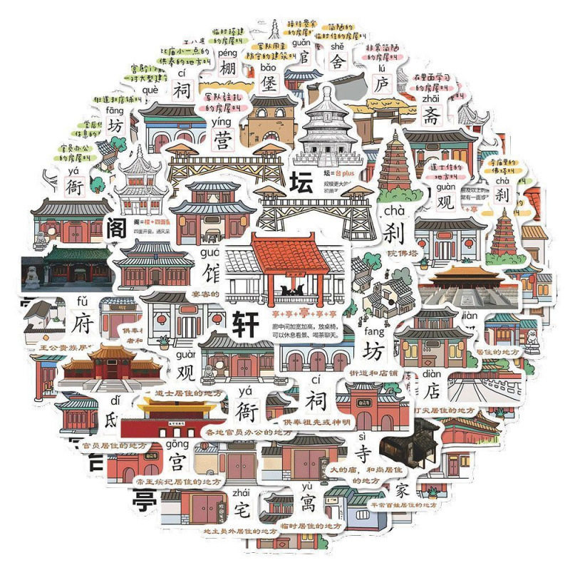 中国古代屋子贴纸108张建筑文化复古艺术手帐电脑头盔行李箱装饰