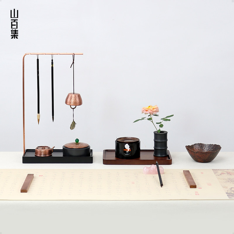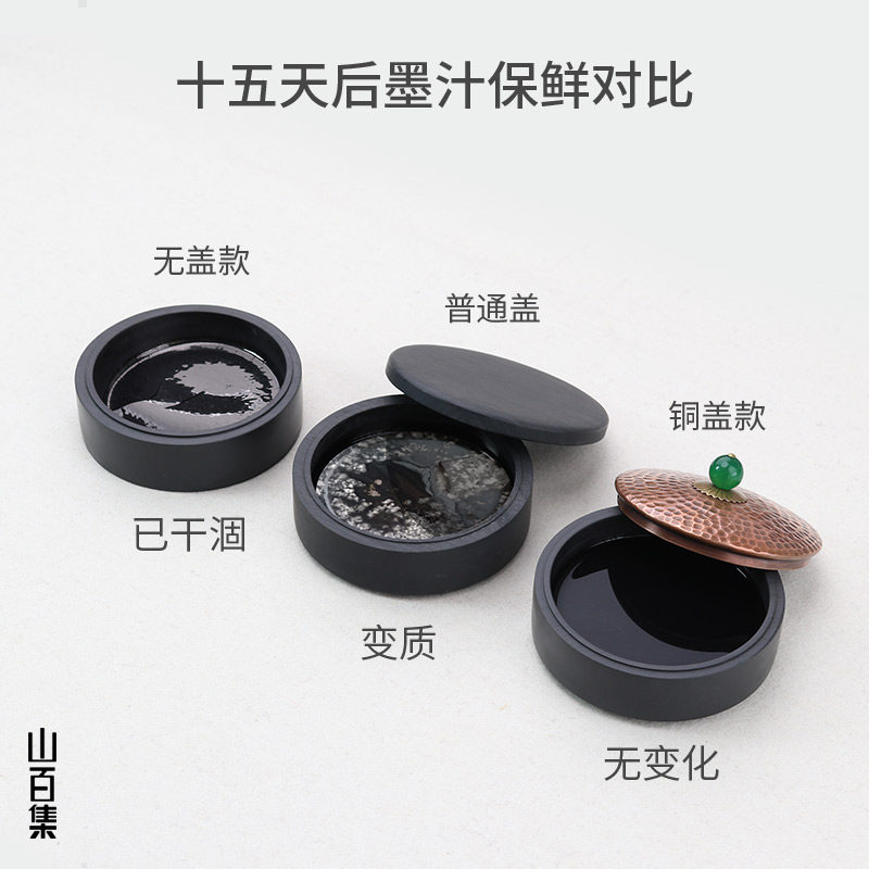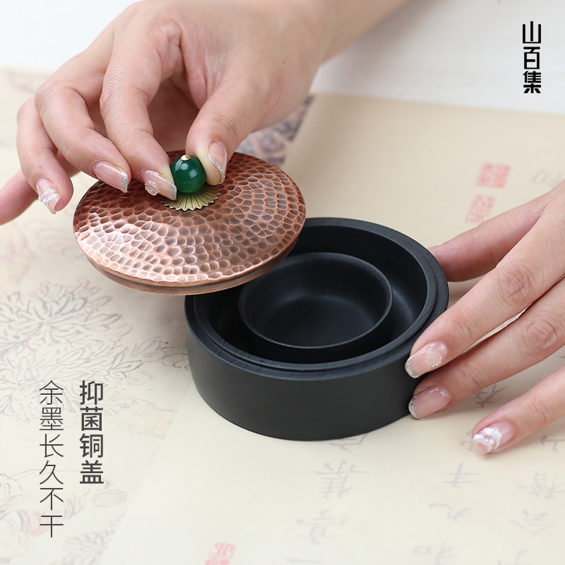 山百集墨盒简曰铜盖火锅砚书法歙砚天然原石可研墨砚台不干墨砚台