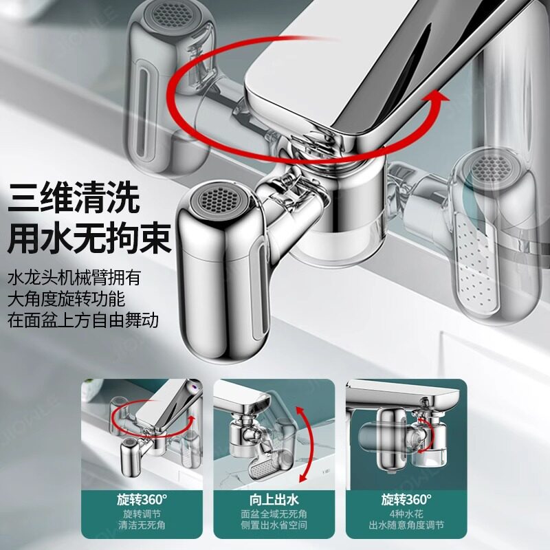 机械臂万向水龙头过滤器嘴自来水家用面盆防溅万能通用净水延伸器