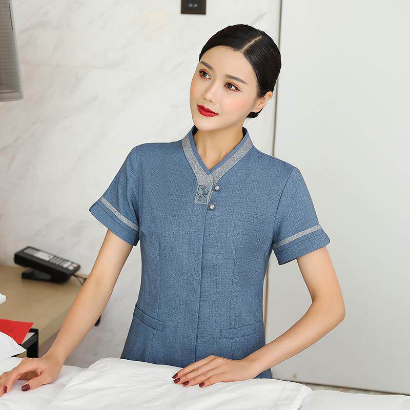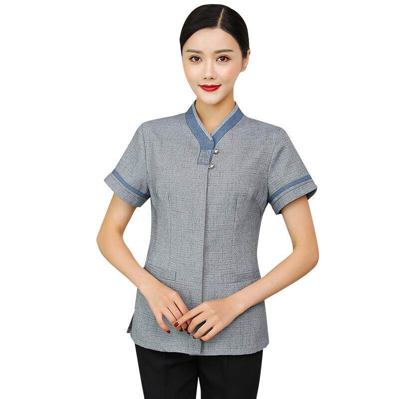 酒店宾馆服务员工作服短袖夏季客房物业家政阿姨保洁员工作服A02