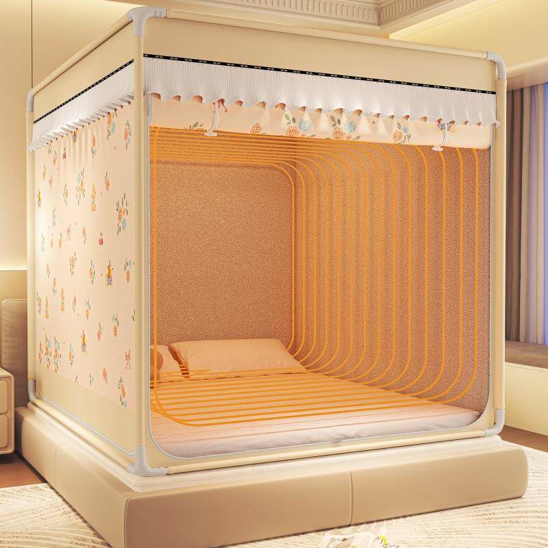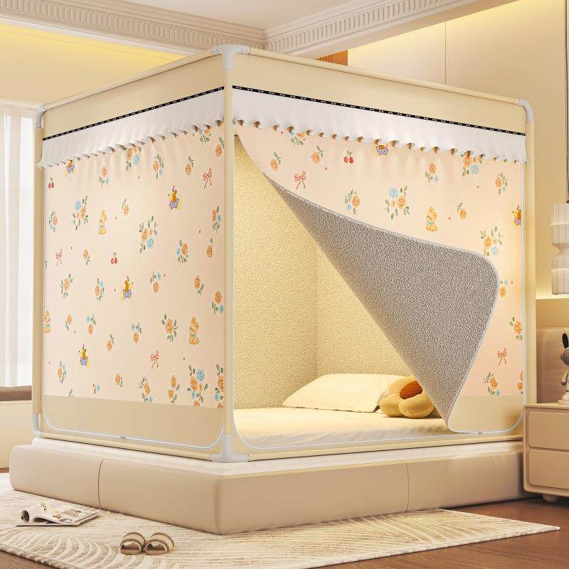 2025新款加厚床幔三开门挡风御寒保暖冬季蚊帐防摔坐床家用蚊帐