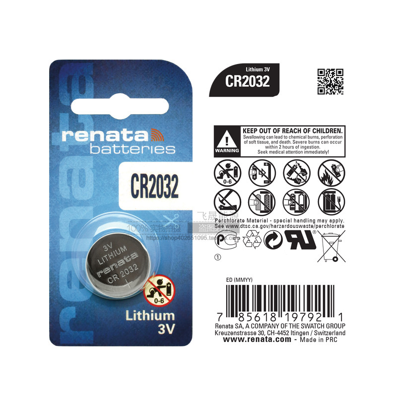 renata瑞士进口cr2032纽扣电池锂3V奥迪大众路虎电视遥控汽车钥匙