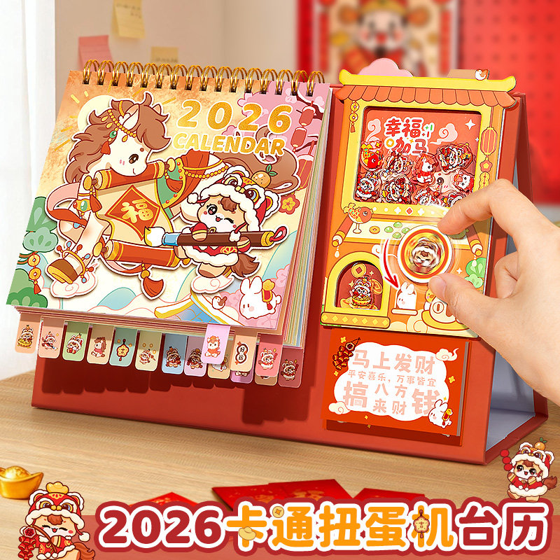台历2026年新款日历桌面摆件办公室中国风马年创意翻页工位工作打卡计划本礼盒企业广告红色喜庆礼品月历定制