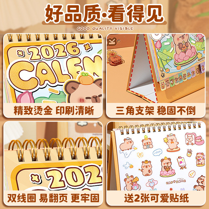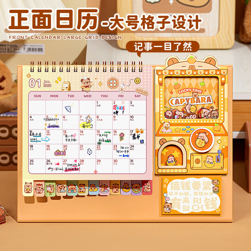 2026年卡皮巴拉扭蛋机台历简约办公室桌面摆件日历月历台历手账本记事本笔记本备忘录创意ins风办公计划本
