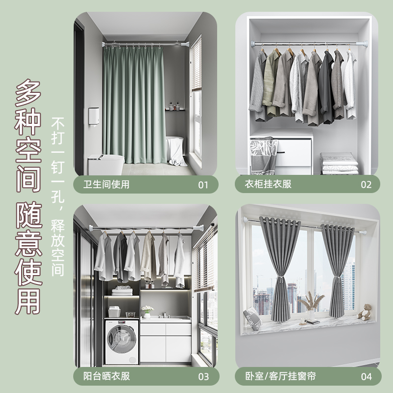 免打孔伸缩毛巾架浴室晾衣架挂衣撑杆卧室衣柜杆不锈钢简易置物架