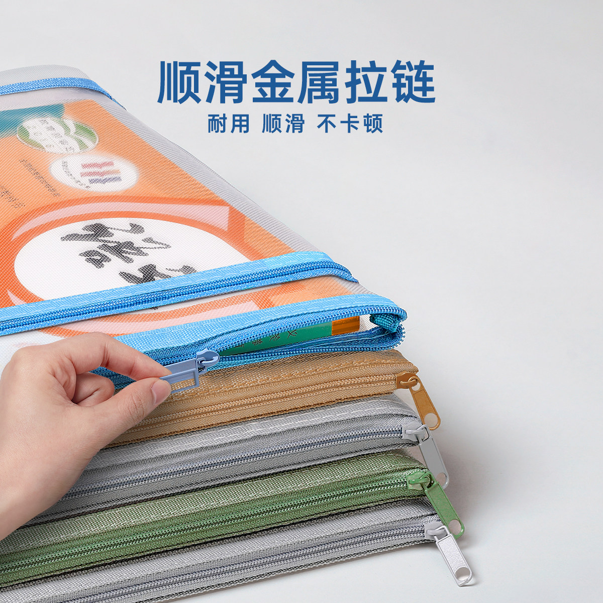 A4文件袋拉链式试卷资料收纳袋透明防水文件科目分类书袋办公学生专用网格小学生学科分类试卷收纳初中生文具