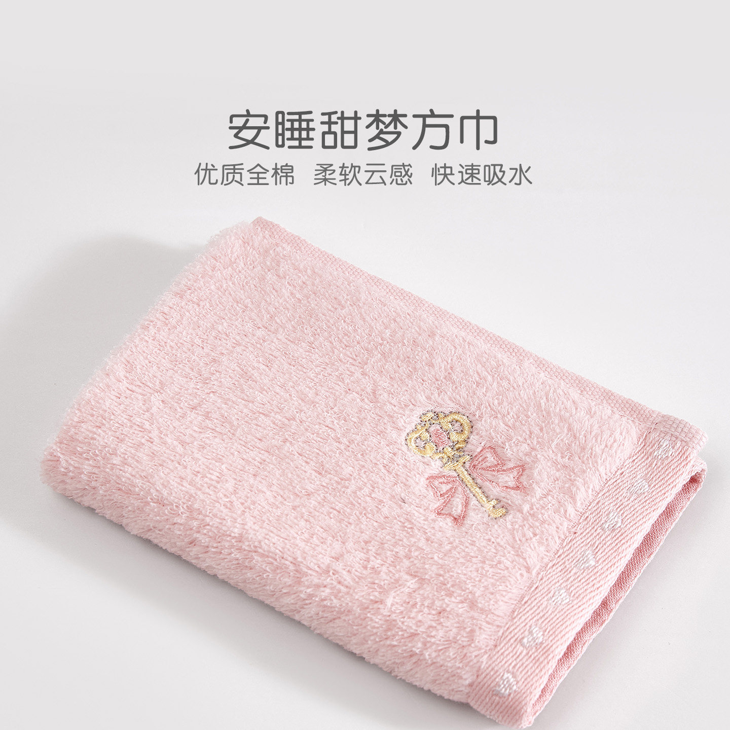 罗莱家纺儿童家居全棉毛巾面巾新款方巾简约卡通女孩纯棉毛浴巾
