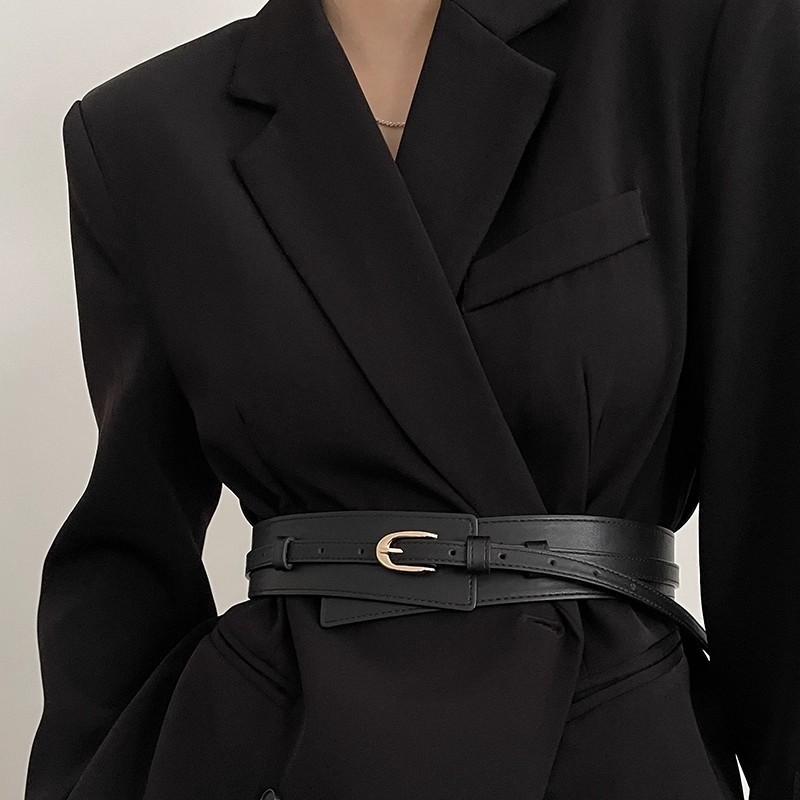 腰带女士2025新款高级感装饰连衣裙配西装外套时尚宽腰封皮带黑色