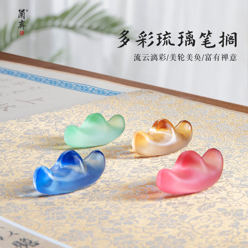 兰斋琉璃笔搁笔山笔舔毛笔架墨碟书法练字笔架创意镇纸镇尺初学者水晶毛笔搁文房四宝桌面摆件装饰品笔托