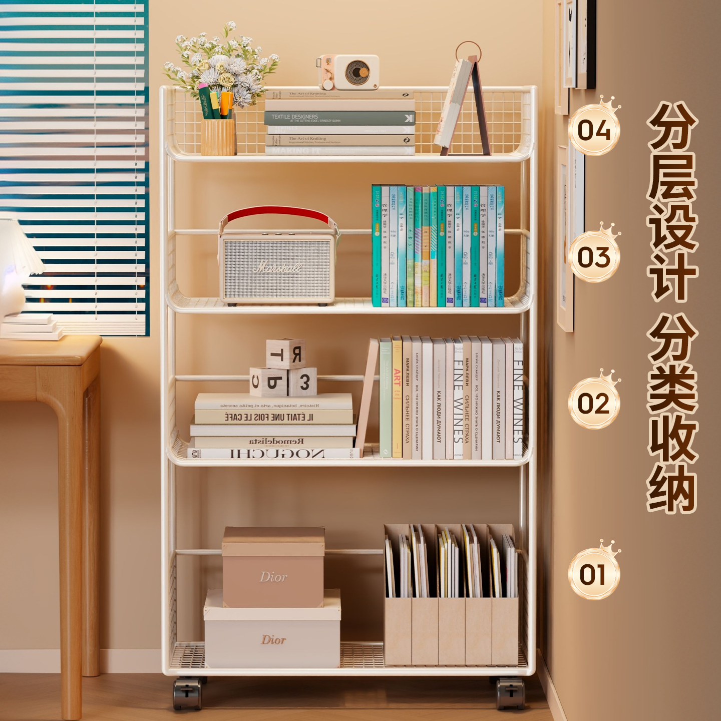 多层桌边书架落地置物架可移动收纳架子带轮小推车办公室书柜分层