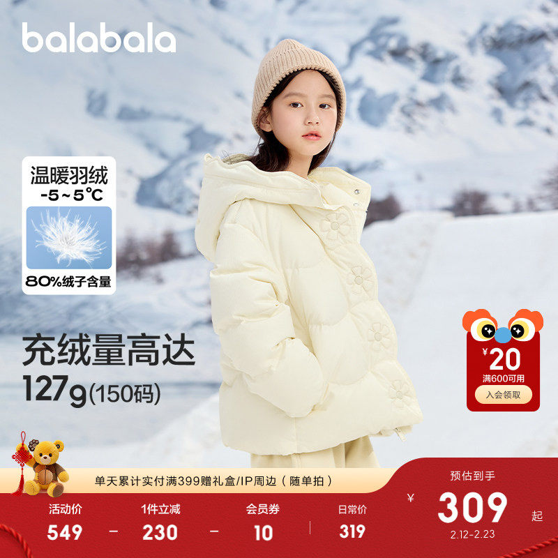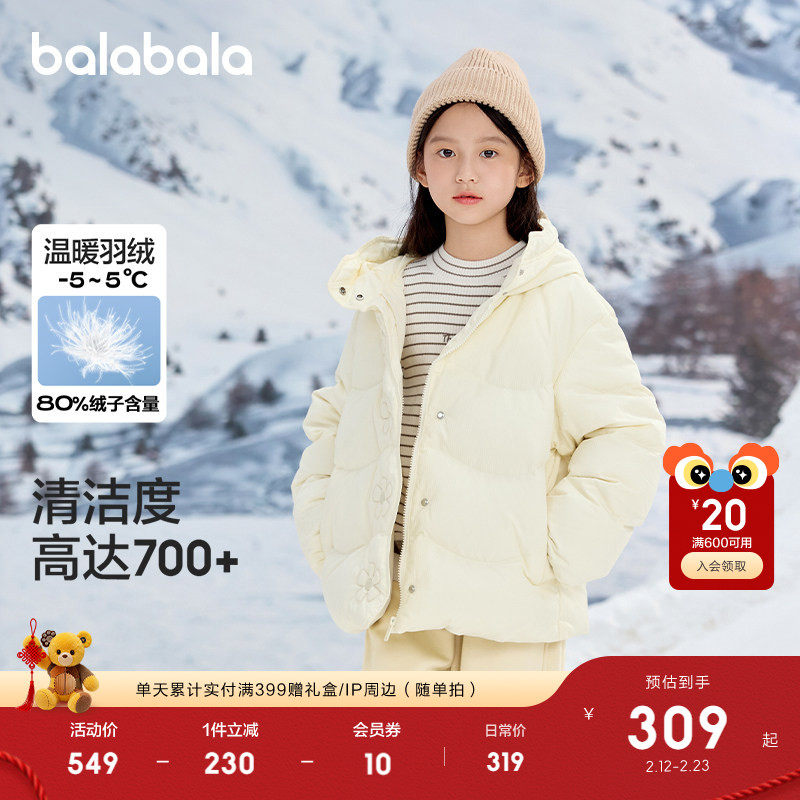 巴拉巴拉童装儿童羽绒服女童冬装连帽外套潮上衣流行舒适户外潮款