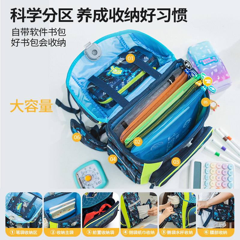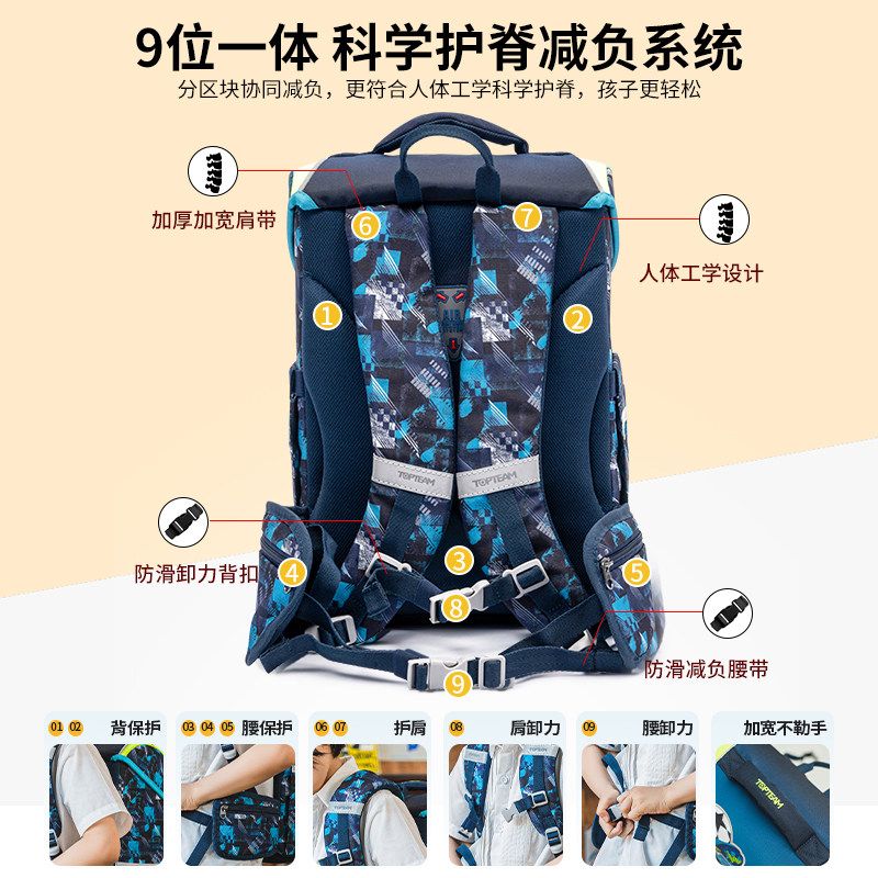 TOPTEAM千千圈男童女童书包小学生双肩背包2024新款男孩女孩一年级到三年级3年级帅气可爱超轻大容量护脊中号