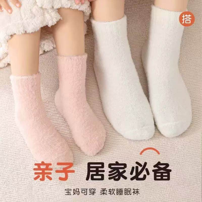儿童袜子加厚秋冬季水貂绒男女童加绒毛圈睡觉宝宝珊瑚绒睡眠保暖
