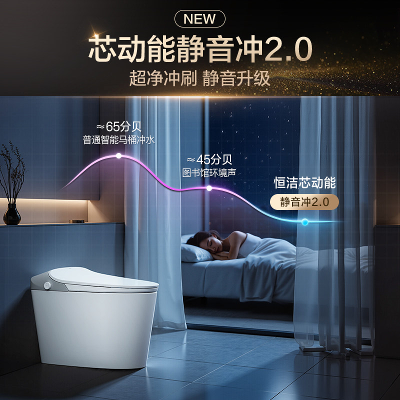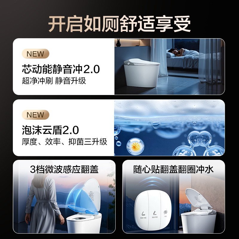 【好物体验】恒洁轻智能马桶坐便器电动泡沫盾感应翻盖611C