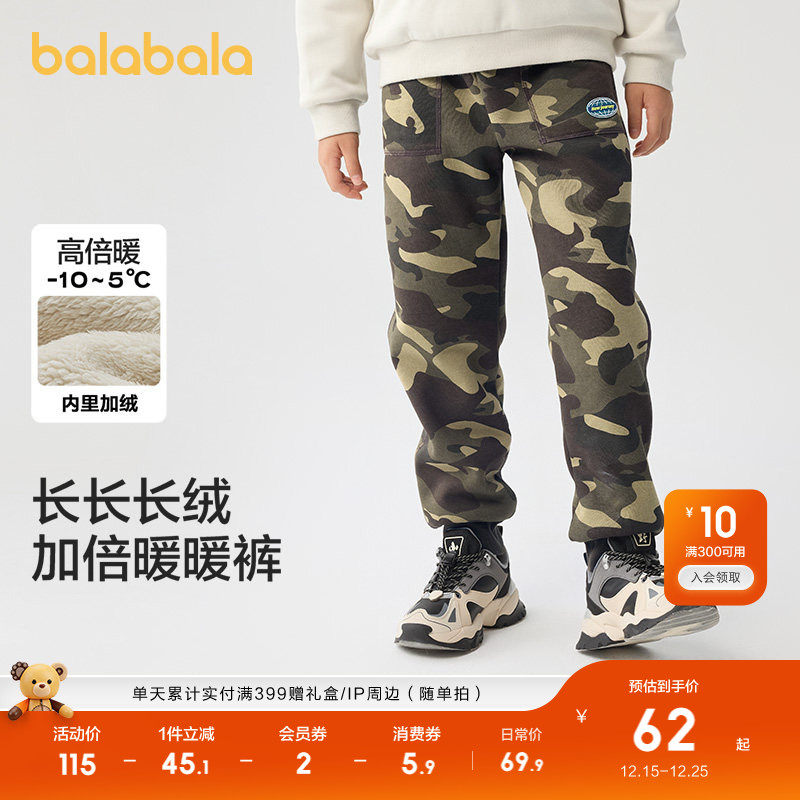 巴拉巴拉童装儿童长裤男童裤子女童大童秋冬加绒加厚防风洋气保暖