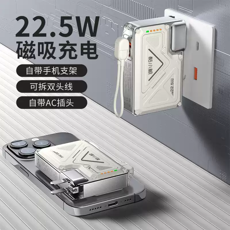 酷小京五合一多功能Magsafe磁吸充电宝快充带线插头便携小型支架