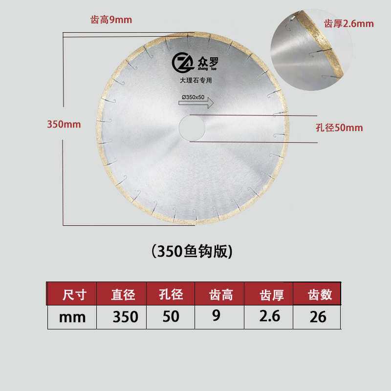 众罗350/400/500/600mm大理石锯片金刚石人造石切割片