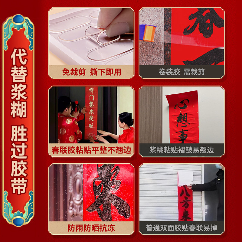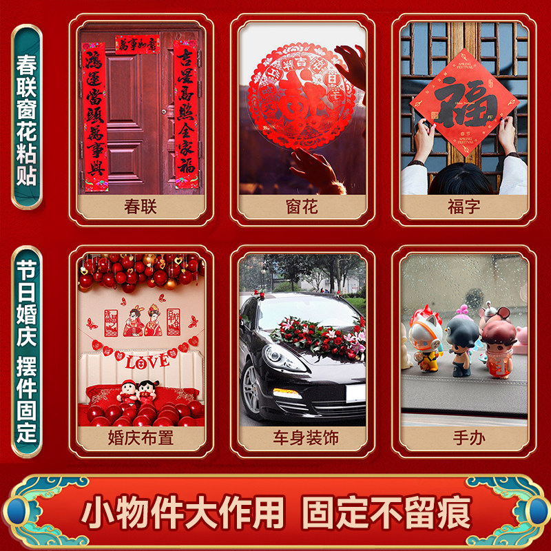 贴春联双面胶贴对联神器无痕胶带不留胶不伤墙高粘度圆点胶固定喜字婚庆婚车饰品新年福字年画粘贴纳米双面胶