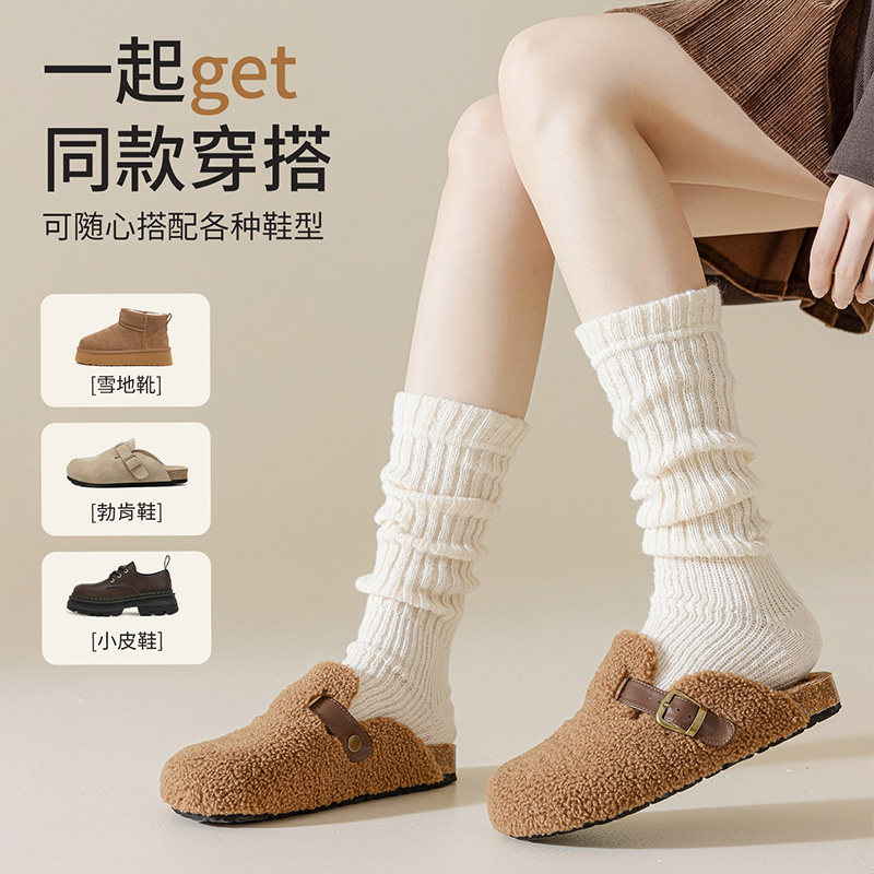 耐尔绵羊毛袜子女秋冬长袜加厚保暖复古百搭中筒袜ins潮堆堆袜