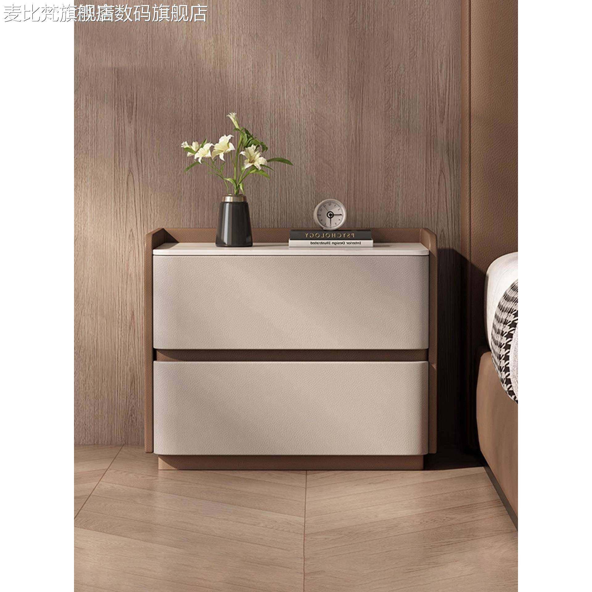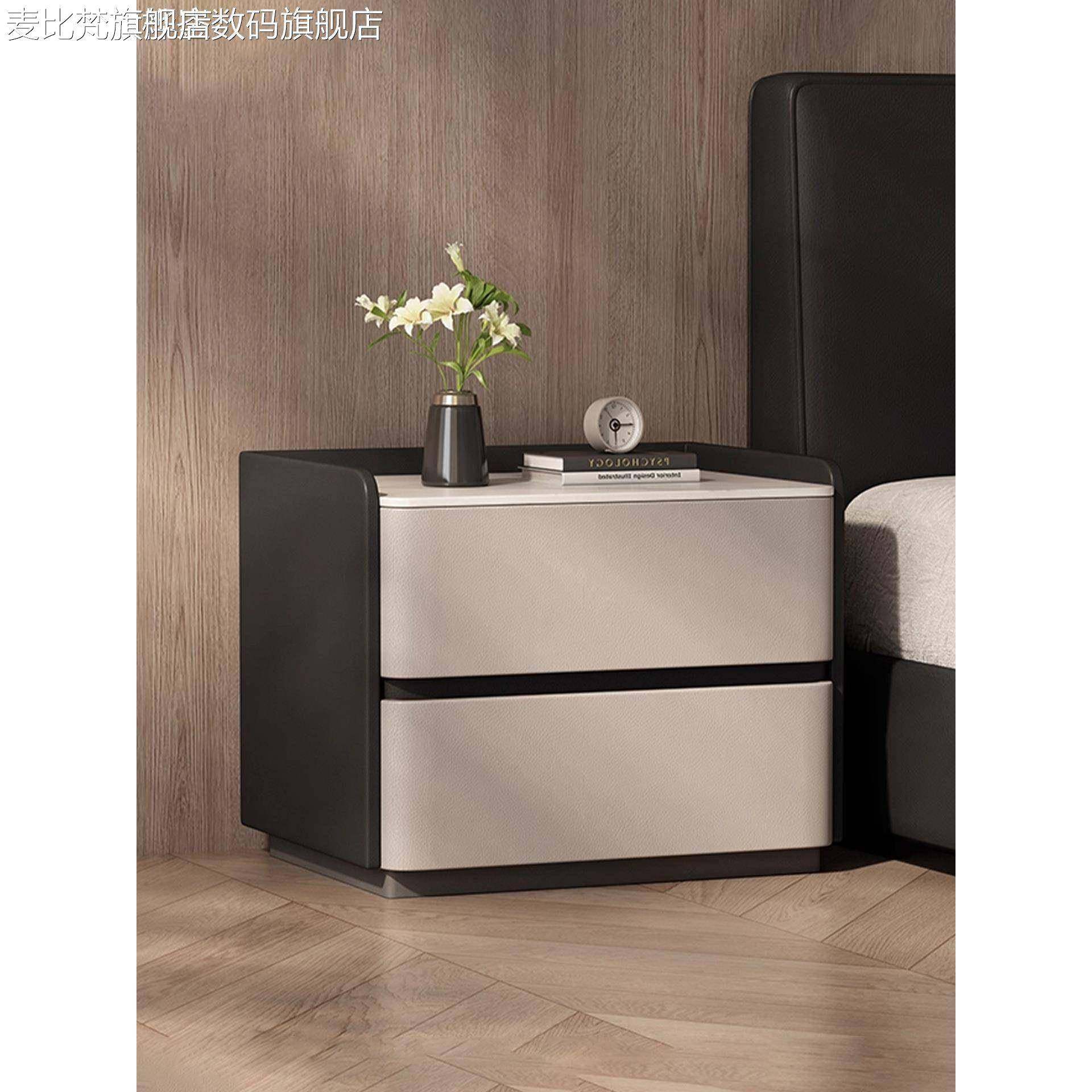 麦比梵创意拼色床头柜全实木家用卧室小型免安装一体落地式床边储物柜子摆件饰品垫垫床笠拉车
