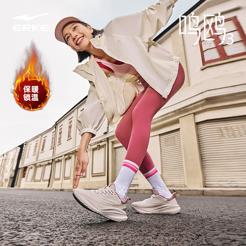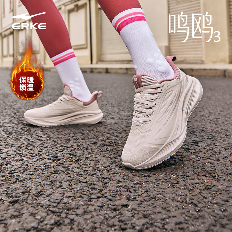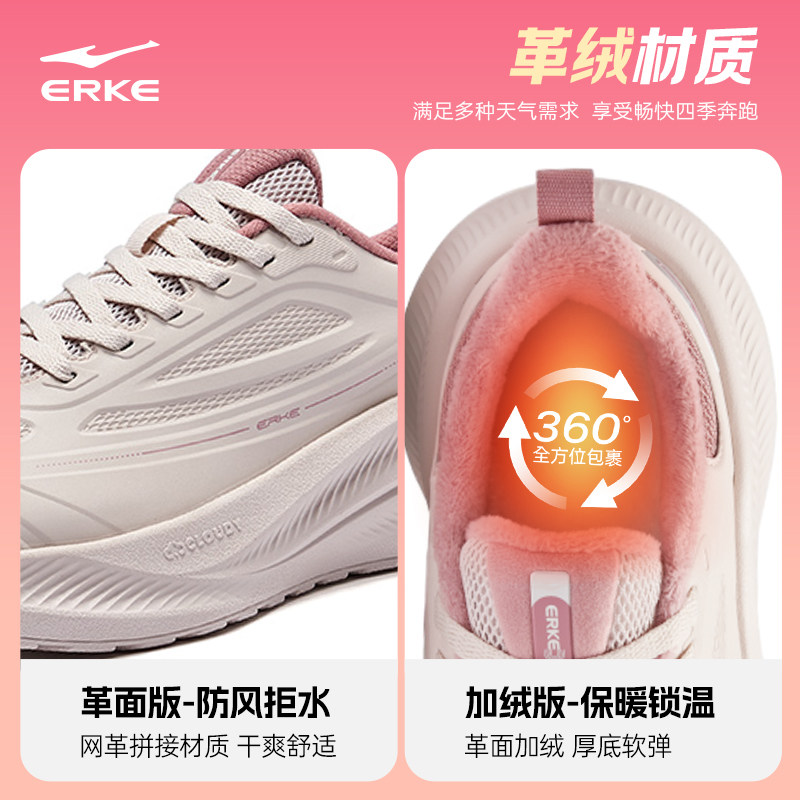 漫步鸿星尔克跑步鞋女减震软底跳绳鞋冬季新款加绒运动鞋轻便女鞋