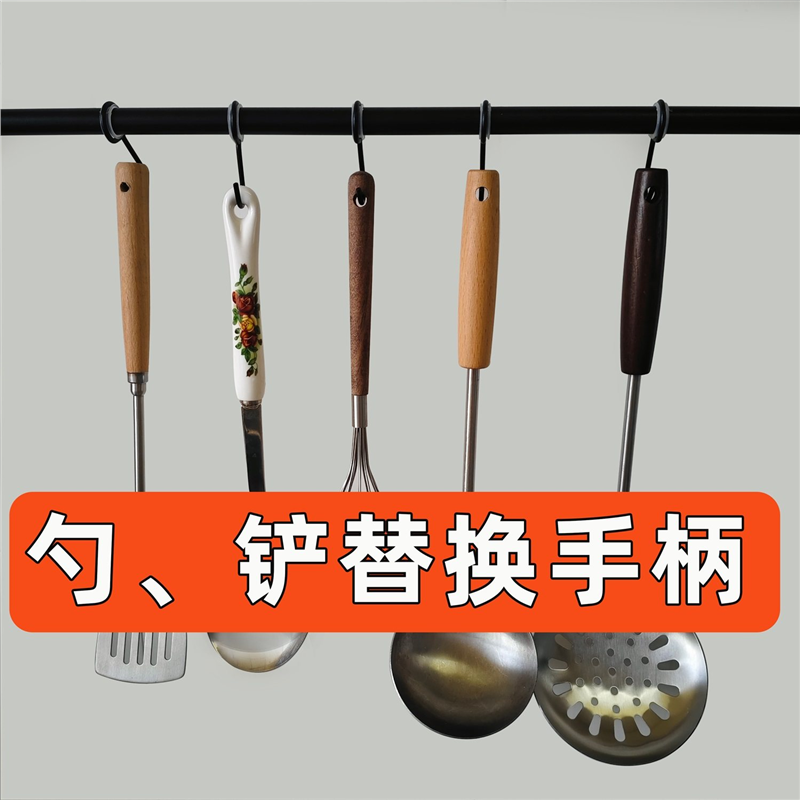 实木锅铲手柄通用老式勺子把柄锅铲把手配件8mm圆汤勺替换木柄把