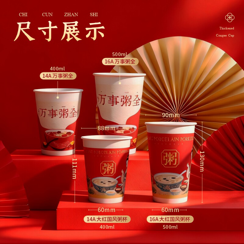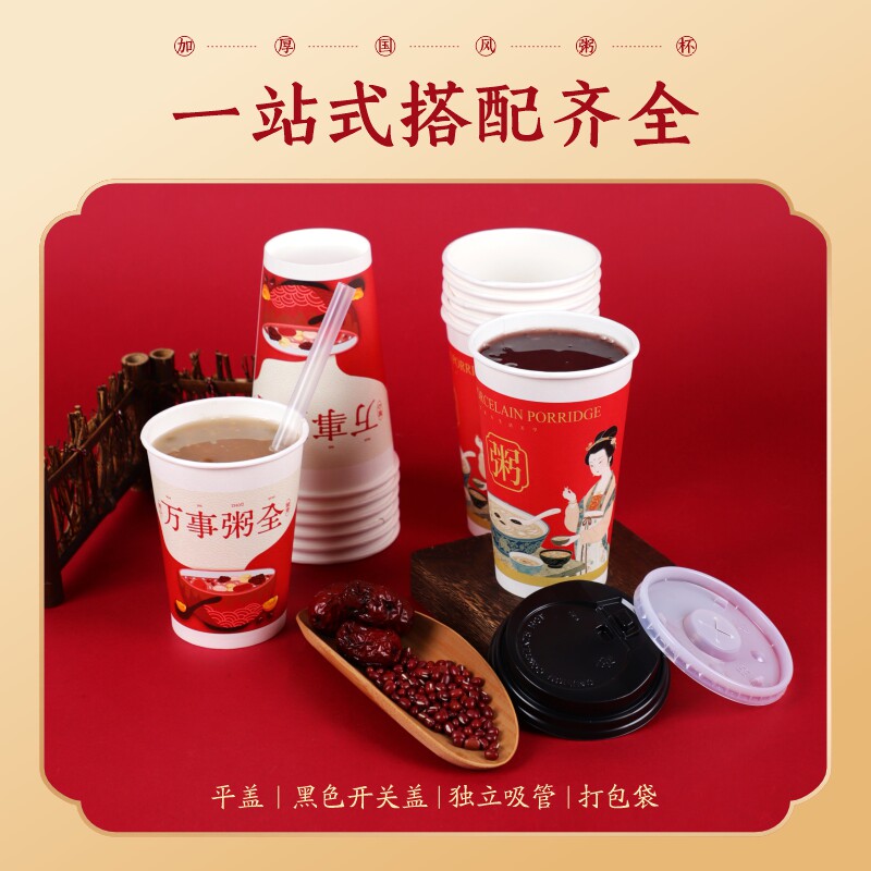 粥杯一次性商用加厚食品级便捷外带盖早餐店打包专用粥稀饭纸杯子