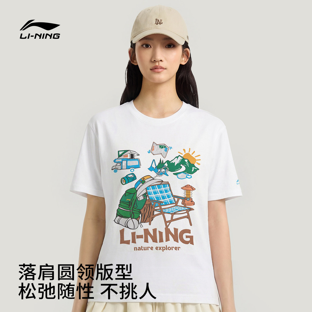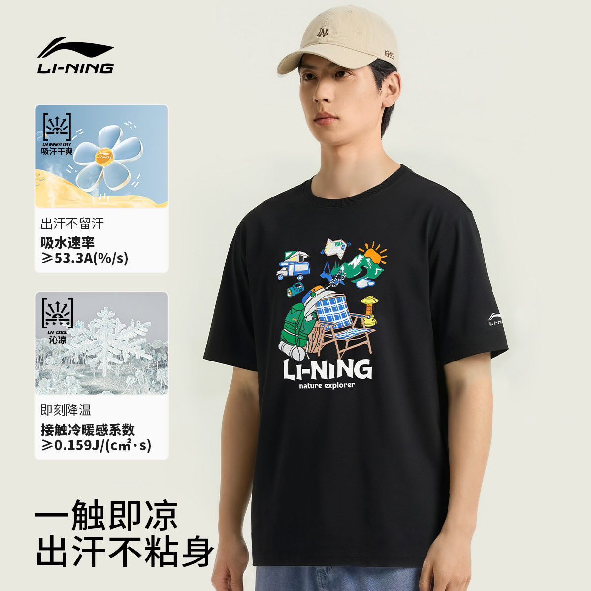 李宁户外短袖男春夏2026新款情侣圆领半袖休闲冰丝吸汗运动T恤女