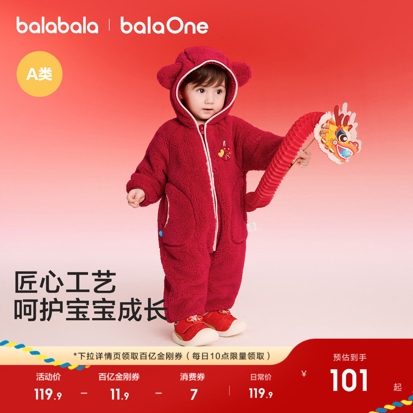 巴拉巴拉新生婴儿连体衣2026新款春秋装宝宝爬服抱衣新年服红色萌