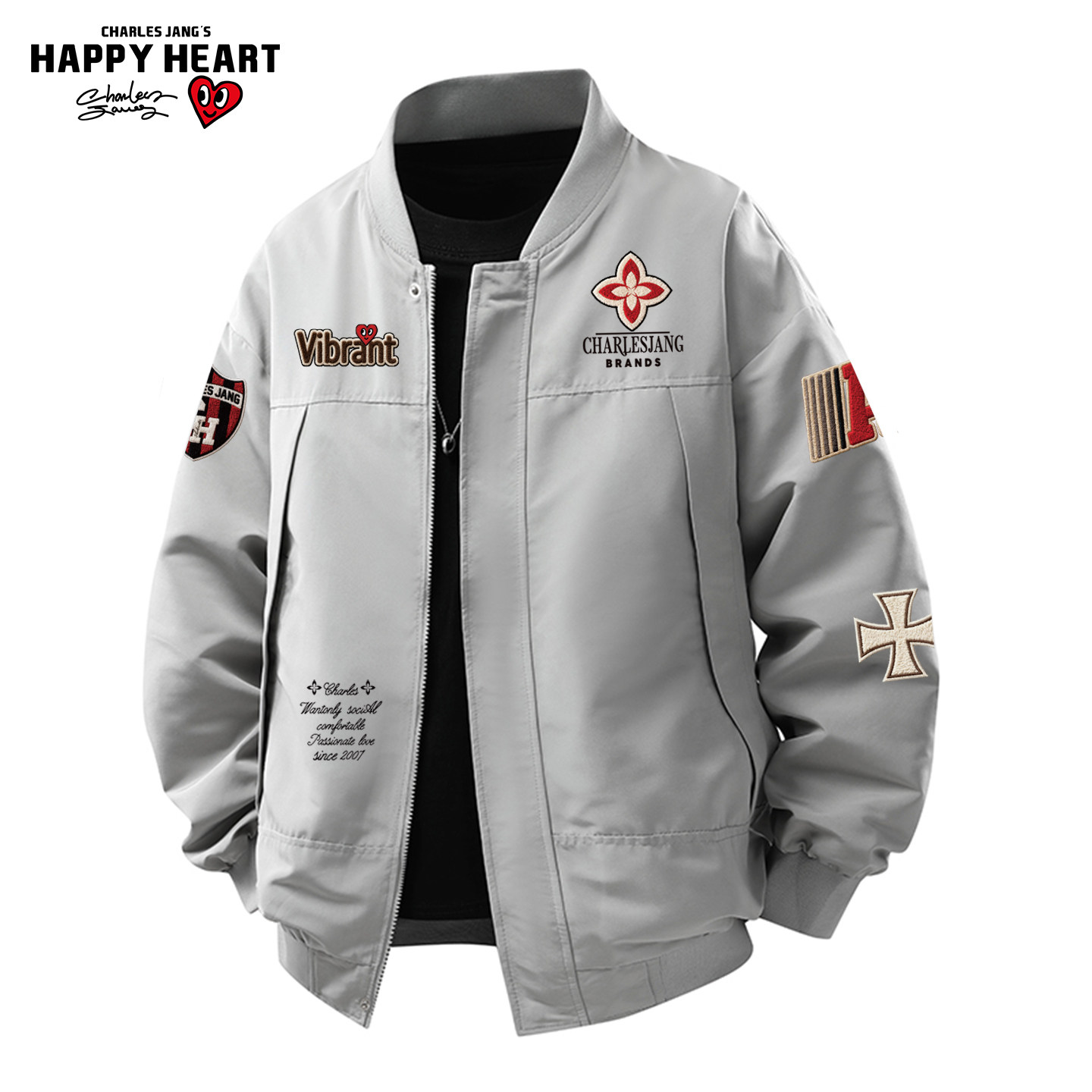 查尔斯桃心 美式学院风印花高街棒球领夹克男士春秋季情侣外套潮