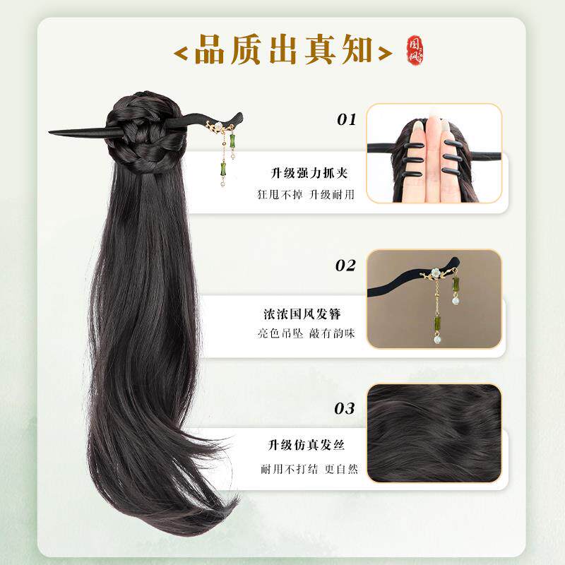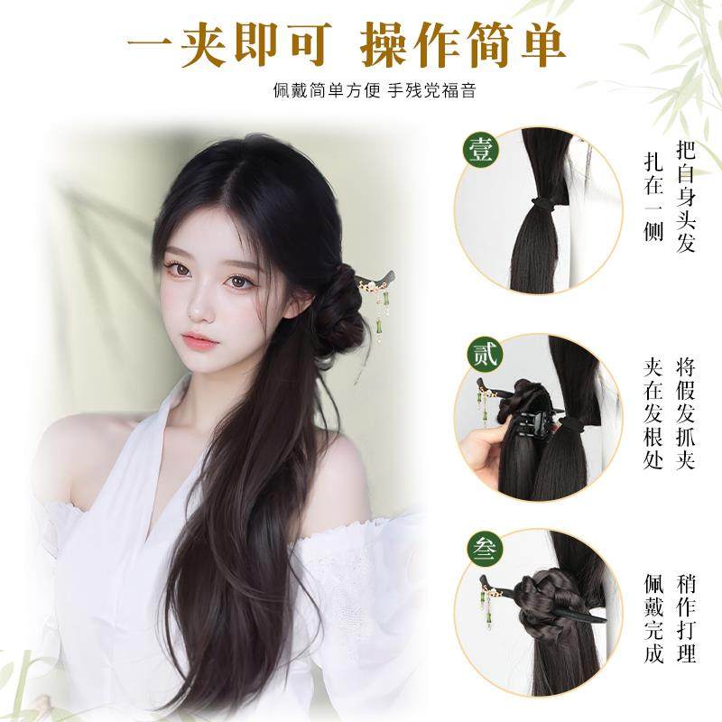 辫子假发女冷感汉服抓夹侧马尾假发新中式仿真发清古风假发辫马尾