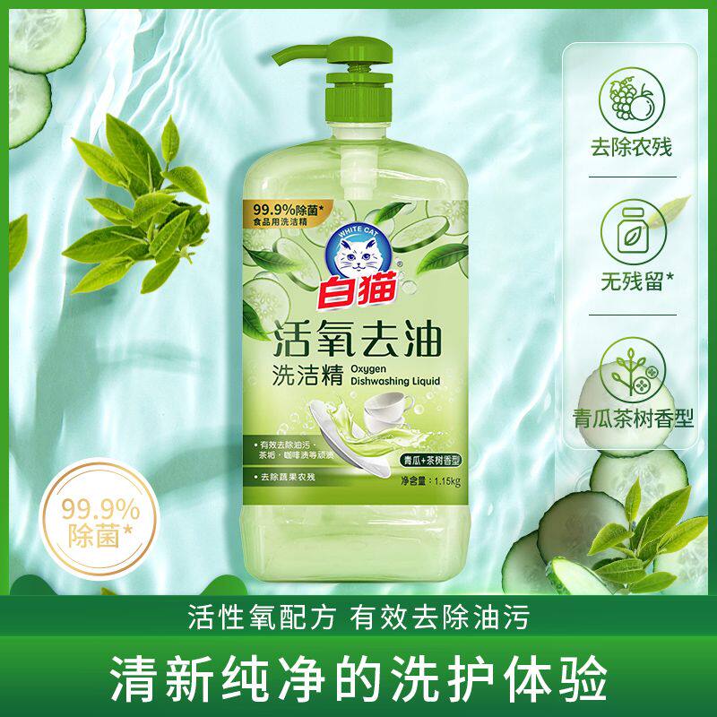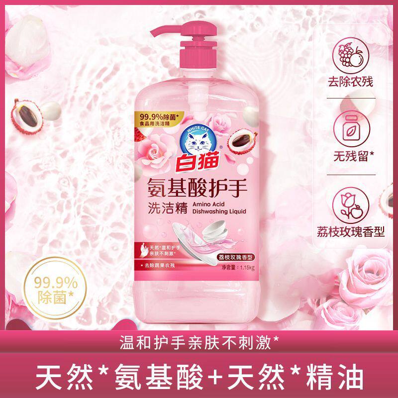 白猫天然植物APG洗洁精氨基酸护手温和除菌家用去油污白桃味